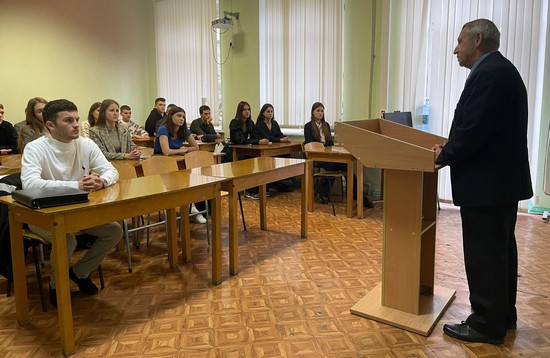 Также, Геннадий Анатольевич поделился со студентами своим профессиональным опытом работы в органах прокуратуры. Он осветил наиболее значимые страницы истории прокуратуры Республики Крым, память о которых позволяют сохранять мемориальные доски ветеранам прокуратуры, организуемые прокуратурой Республики Крым выставки и экспозиции, в которых также принимают участие студенты нашего Института. Данные мероприятия способствуют патриотическому воспитанию студентов и позволяют сформировать у них качества, необходимые для дальнейшей службы в органах прокуратуры В завершение встречи Геннадий Анатольевич выступил с напутственным словом, в котором рассказал студентам о необходимости всестороннего развития личности для достижения успехов в учебе.