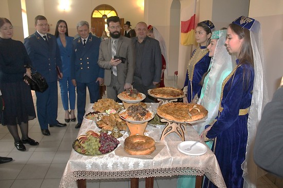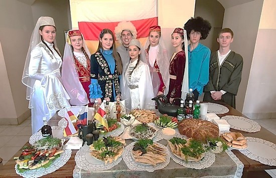 Студенты представляют жюри блюда традиционной осетинской кухни |