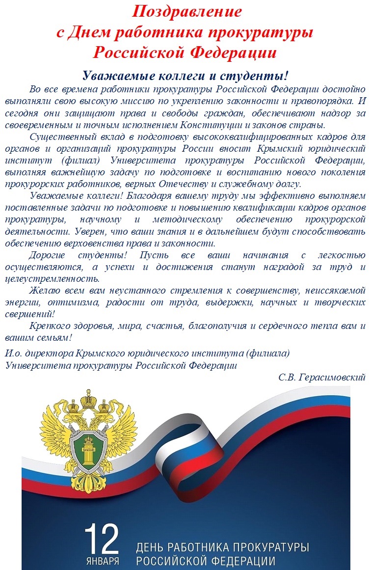 Поздравление и.о. директора Института с Днем работника прокуратуры Российской Федерации