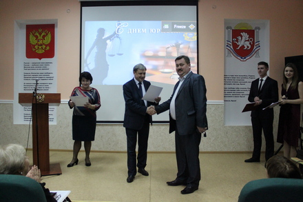 4 декабря 2017 года в Крымском юридическом институте (филиале) Академии Генеральной прокуратуры Российской Федерации состоялось торжественное собрание и концерт, посвященные празднованию Дня юриста. С поздравительным словом ко всем присутствующим обратился директор института, старший советник юстиции Колюка Н.Н. В своем выступлении Колюка Н.Н. зачитал поздравительный лист от ректора Академии Генеральной прокуратуры Российской Федерации, государственного советника юстиции 2 класса Капинус О.С., отметив, что правовое просвещение, защита прав граждан совершенствование законодательства, повышение уровня правовой культуры россиян – это основные задачи, которые стоят перед российским юридическим сообществом.
