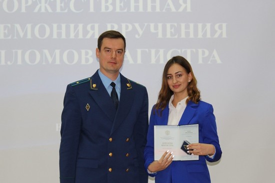 Мероприятие продолжилось вручением дипломов и нагрудных знаков «Выпускник Университета прокуратуры Российской Федерации». Дипломы магистра с отличием получили 4 выпускника, дипломы магистра – 7 выпускников.