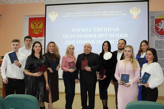 С приветственной речью к выпускникам обратился директор Института Зацепин А.М. Он поздравил выпускников с успешным окончанием обучения и пожелал удачи в дальнейшем освоении профессии. В своей речи Александр Михайлович выразил уверенность, что полученные знания и профессиональные навыки помогут им успешно работать и приносить пользу гражданам, с честью стоять на страже закона, решать поставленные задачи и реализовывать свои таланты. С напутственным словом к выпускникам обратился прокурор Республики Крым Камшилов О.А. Он отметил, что приобретенные в ходе обучения знания послужат прочной основой в предстоящей работе, направленной на защиту справедливости, прав и свобод граждан, а также пожелал дальнейших успехов в профессиональной деятельности и светлого будущего.
