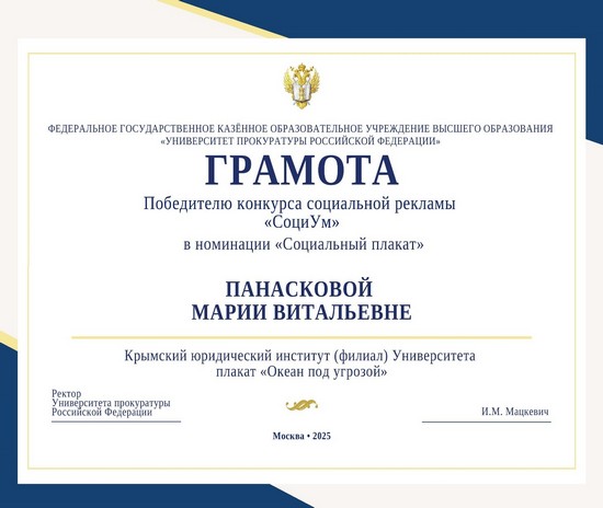 По итогам конкурса социальной рекламы «СоциУм», проводимого Университетом прокуратуры