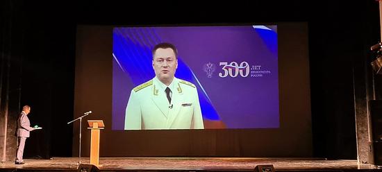 Мероприятие началось с видеопоздравления Генерального прокурора Российской Федерации, действительного государственного советника юстиции Краснова И.В., который в своем выступлении отметил, что, имея 300-летний опыт, органы прокуратуры сегодня являются надежной опорой российской государственности и особенно выделил вклад выдающихся предшественников, ветеранов, которые оставили после себя замечательное и сильное наследие.