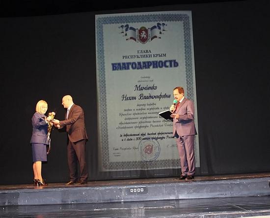 Поздравление с профессиональным праздником от Главы Республики Крым Аксенова С.В. зачитал заместитель Председателя Совета министров Республики Крым Назаров М.А., в котором была отмечена высокая эффективность работы Института по подготовке и воспитанию высококвалифицированных специалистов и вручил заслуженные награды: