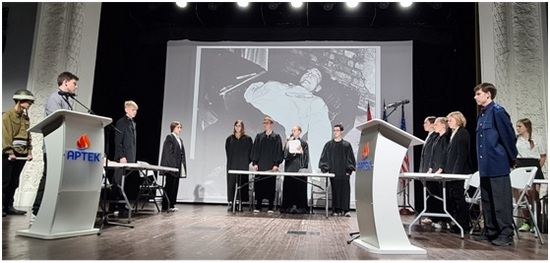 В ходе исторической реконструкции ребята познакомили своих сверстников – обучающихся Артека – с особенностями организации и проведения Международного военного трибунала, показали сцены допроса свидетелей и подсудимых, продемонстрировали архивные фото- и видеодоказательства нацистских преступлений в годы Второй мировой войны, а также рассказали о роли советских прокуроров в доказывании вины нацистских преступников.